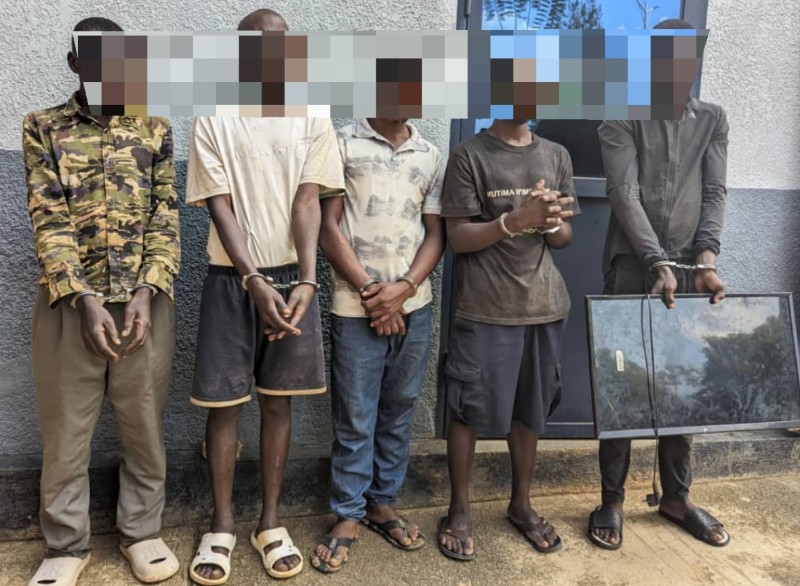 Polisi y’u Rwanda ikorera mu Karere ka Kamonyi, mu ijoro ryo kuri uyu wa 09 Kamena 2025 mu Mudugudu wa Taba, Akagari ka Masaka, Umurenge wa Rugalika ho mu Karere ka Kamonyi, yataye muri yombi abagabo batanu bari hagati y’imyaka 21 na 55. Bakurikiranyweho ubujura bwo gutegera abantu mu mayira bakabacuza utwabo ndetse no gutera abantu mu ngo bagatobora inzu bakiba ibyo basanze.