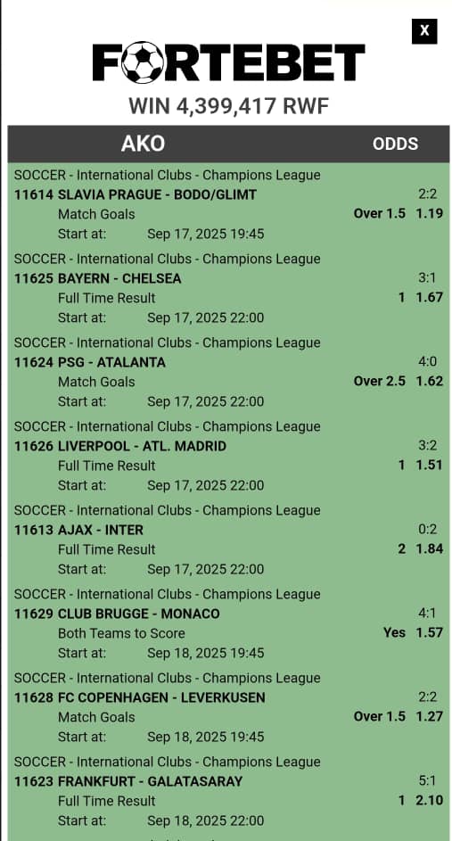 Mu gihe cy’ibyumweru bibiri, umunyamahirwe muri FORTEBET yatsindiye 4,399,417RWF yateze amafaranga Igihumbi ( 1,OOORWF) gusa. Kuri uyu munyamahirwe, byari ibihe bitoroshye nyuma yo gutegereza umukino wa nyuma ku Ipari ye aho yari yateze kwinjizanya igitego aho Brentford yari iri gukina na Manchester United mu cyumweru gishize.