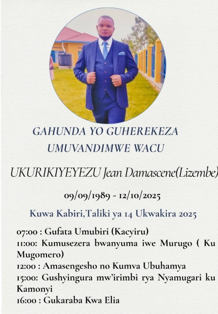 Nkurunziza Jean de Dieu, Umunyamabanga Nshingwabikorwa w’Umurenge wa Rugalika yabwiye intyoza.com ko amakuru y’urupfu rwa Ukurikiyeyezu Jean Damascene (Lizembe) bayamenye batabajwe mu gitondo cyo ku wa 12 Ukwakira 2025.