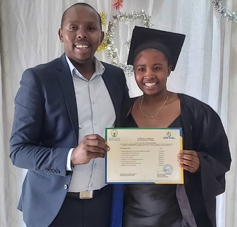 Akomeza ati“ Aya mahirwe mpawe nzayabyaza umusaruro niteze imbere kuko nize ibintu byinshi birimo; Gukora Ikawa ku buryo umukiriya uyinyoye ashima kandi akazagaruka. Nize gukora ibinyobwa bitandukanye kandi neza ndetse no gutunganya ibiribwa ku buryo nta mukiriya wangeraho ngo agende ubutagaruka. Kuri njye, aya ni amahirwe mpawe ntagomba gupfusha ubusa kuko ni Umusingi wo kurema ahazaza hanjye no kugira ngo mbe uw’umumaro ku Gihugu cyanjye”.